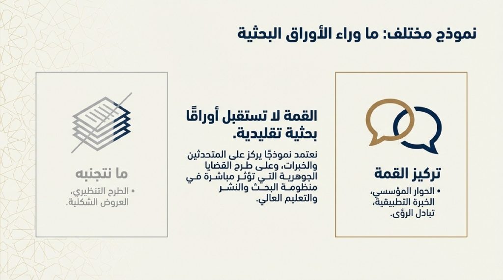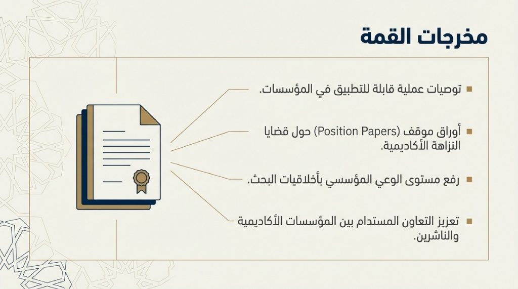 تأتي هذه القمة استجابة للتحديات المتزايدة التي تواجه المؤسسات الأكاديمية، وحرصاً على بناء ثقافة علمية قائمة على الأمانة، المسؤولية، والالتزام بالمعايير الدولية.
